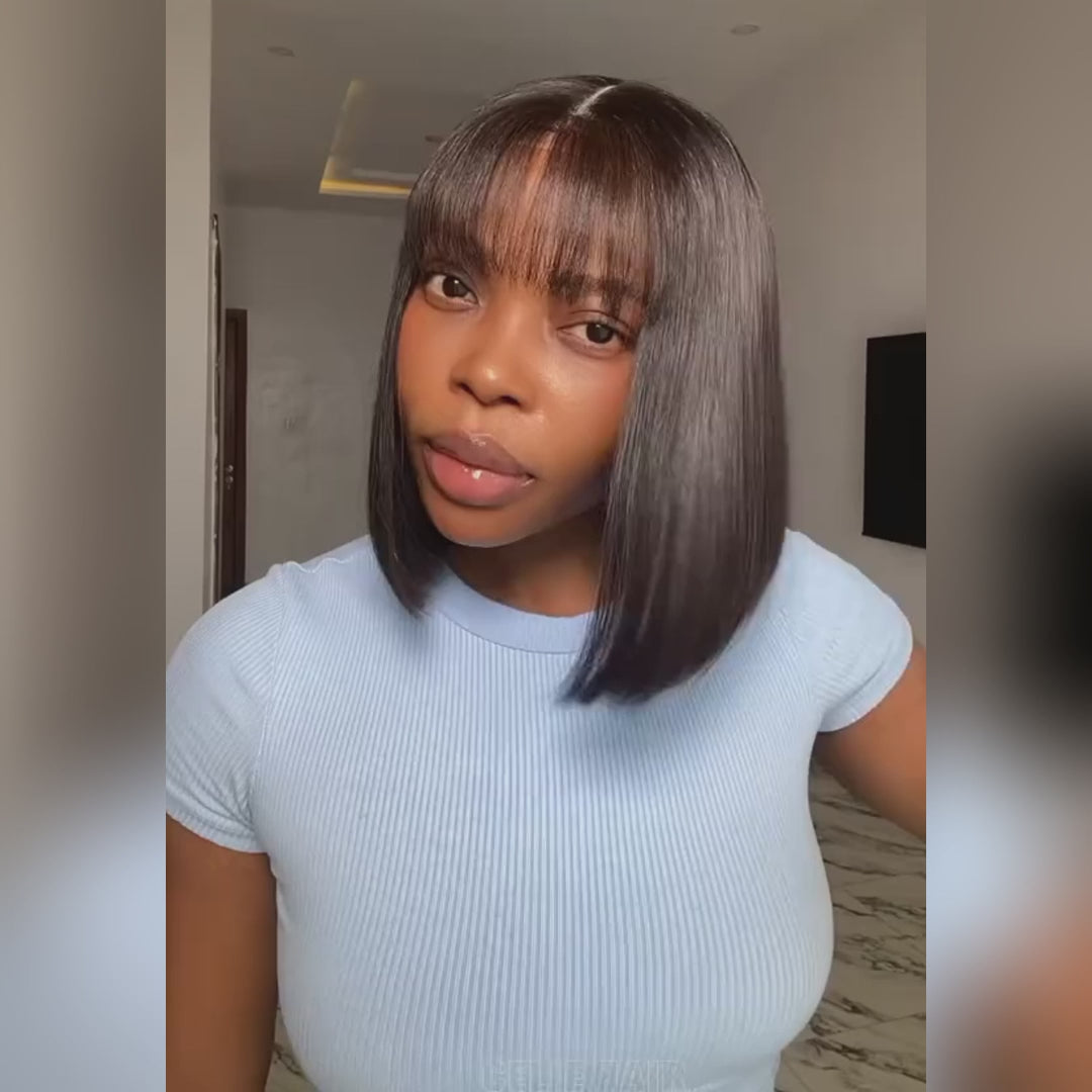 Glueless Machine Made Wig |Straight Bob Wig With Bangs(10''-14'')